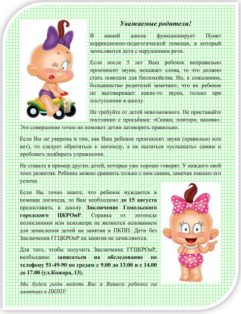 Подробную информацию о проведении психолого-медико-педагогической комиссии, специальных образовательных услугах для детей с ОПФР в учреждениях образования г. Гомеля можно получить по телефонам 514990 в ГУО «Гомельский городской центр коррекционно-развивающего обучения и реабилитации» (ул. Кожара, 13).